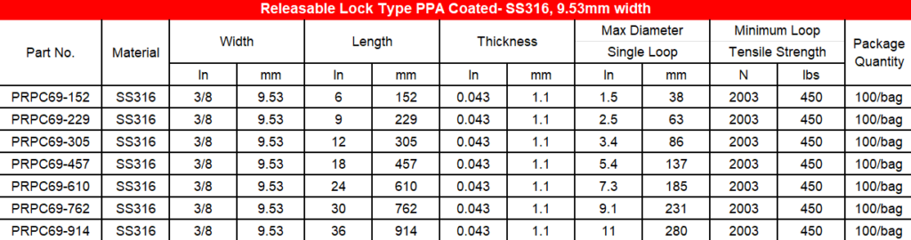 Type 316 Stainless Steel cable ties: Type 316 stainless steel is an austenitic chromium-nickel alloy with superior corrosion resistance, extensively used in marine environments and areas exposed to various chemicals, salts, acids, and high temperatures. It offers superior creep strength at elevated temperatures. For customized Type 316 products or assistance, please contact our team.
