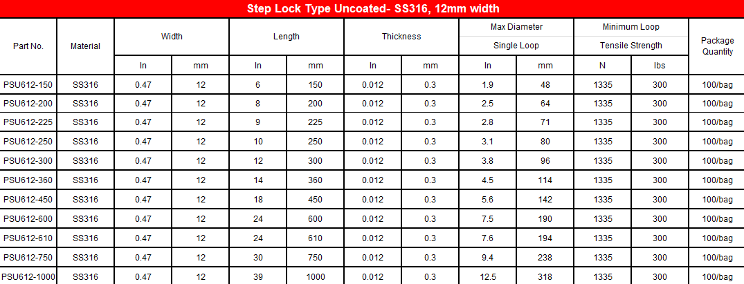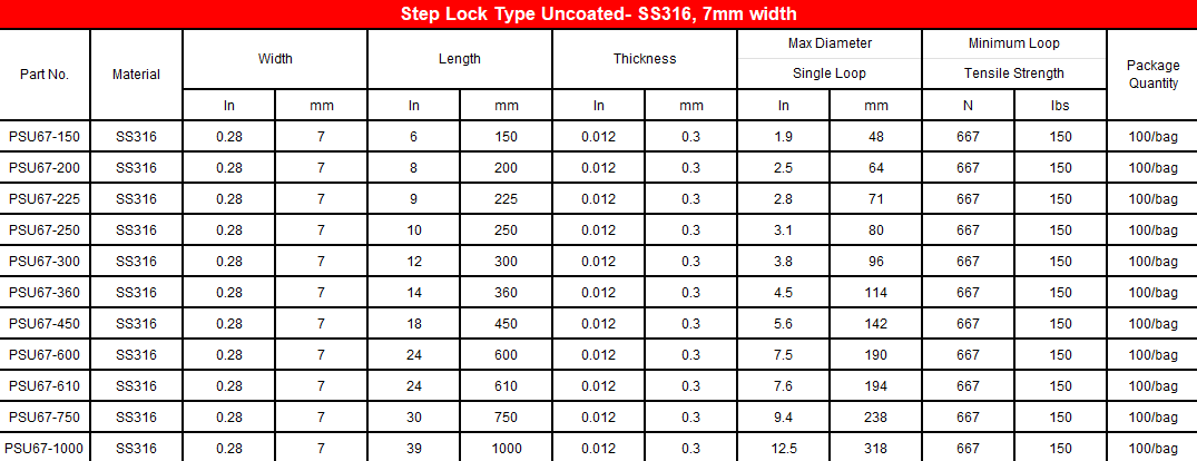 Manufacturer: SS Cable ties or Stainless steel cable ties, ladder type cable ties feature an excellent self-locking mechanism (pawl and ratchet), eliminating the need for time-consuming crimping or folding operations.